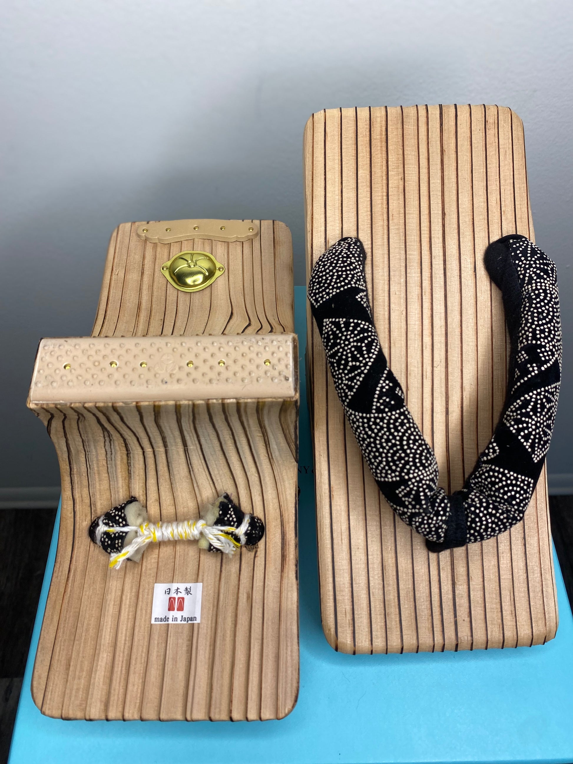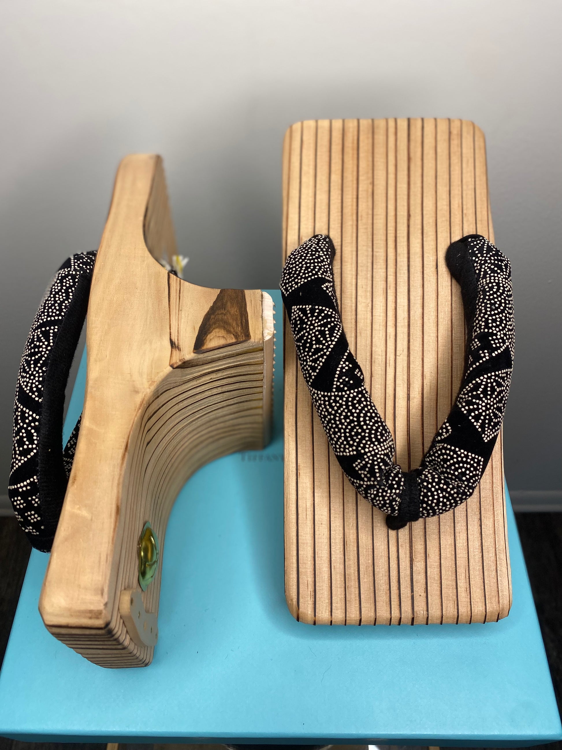 - [Iconic Japanese Sandals]: with their millenary history, One Tooth Geta sandals are very popular in Japanese Art and Folklore. These peculiar wooden sandals were traditionally worn by Monks, Traditional Dancers and legendary creatures such as Tengu (that's why they are also called Tengu Geta)