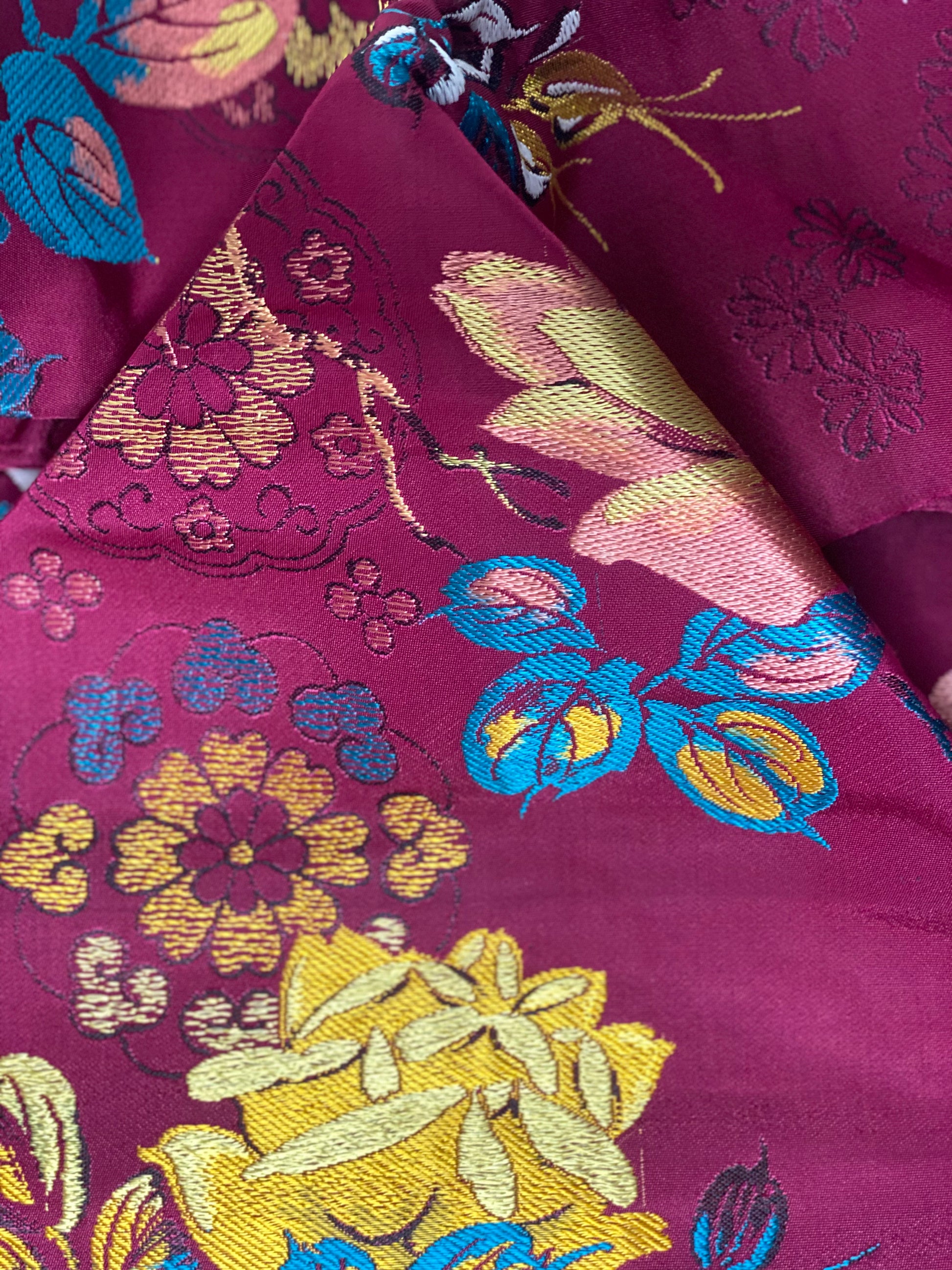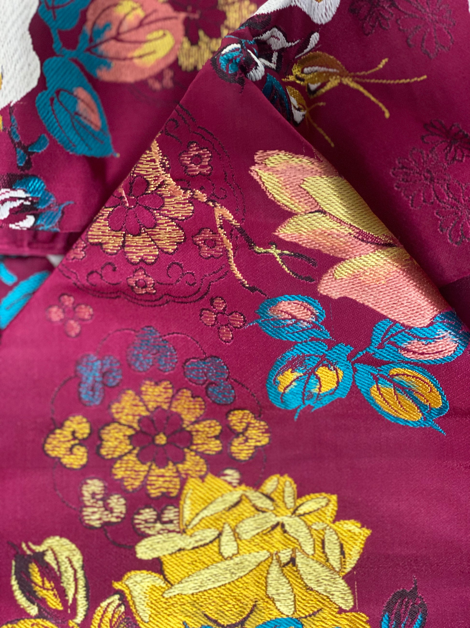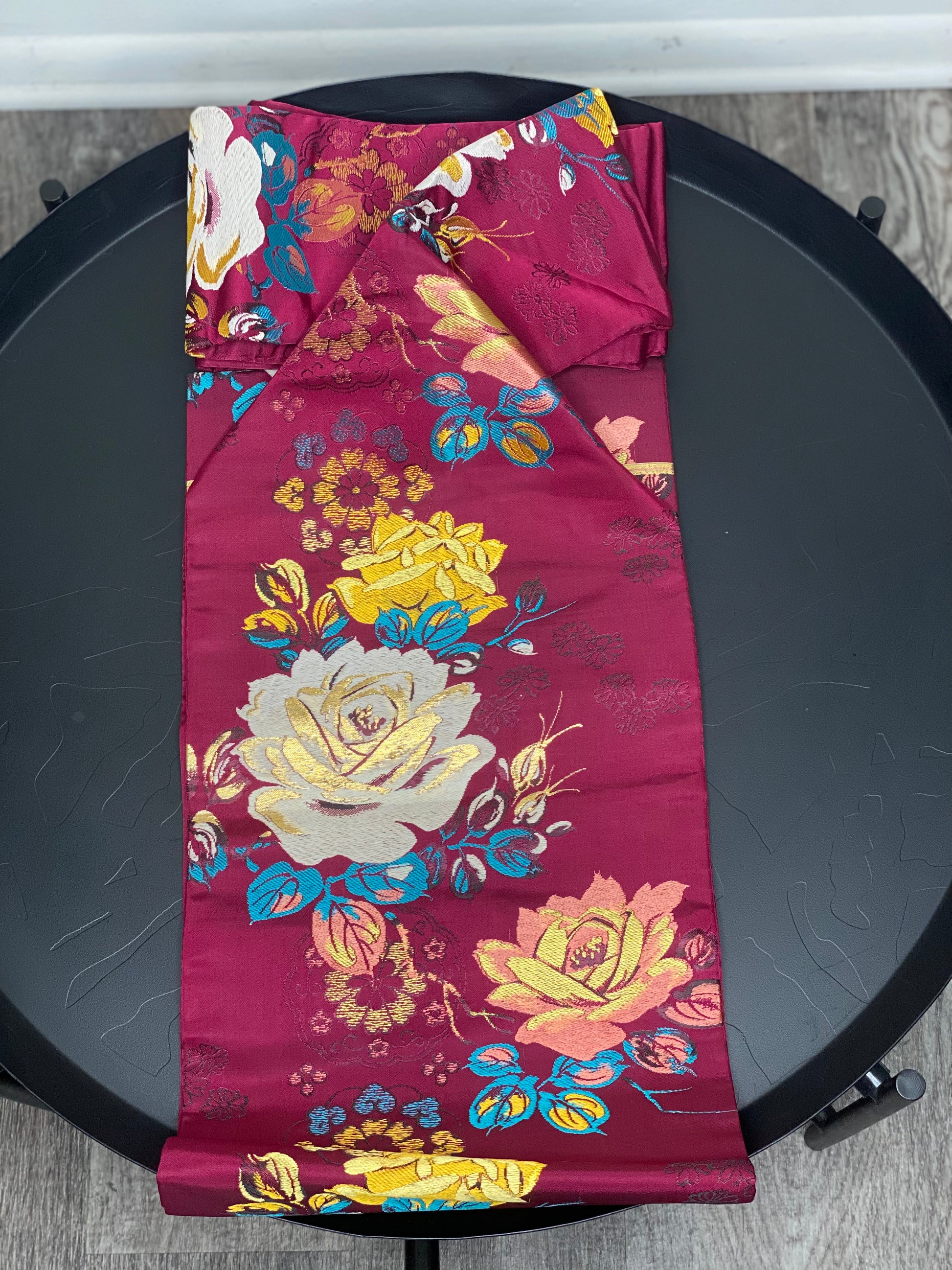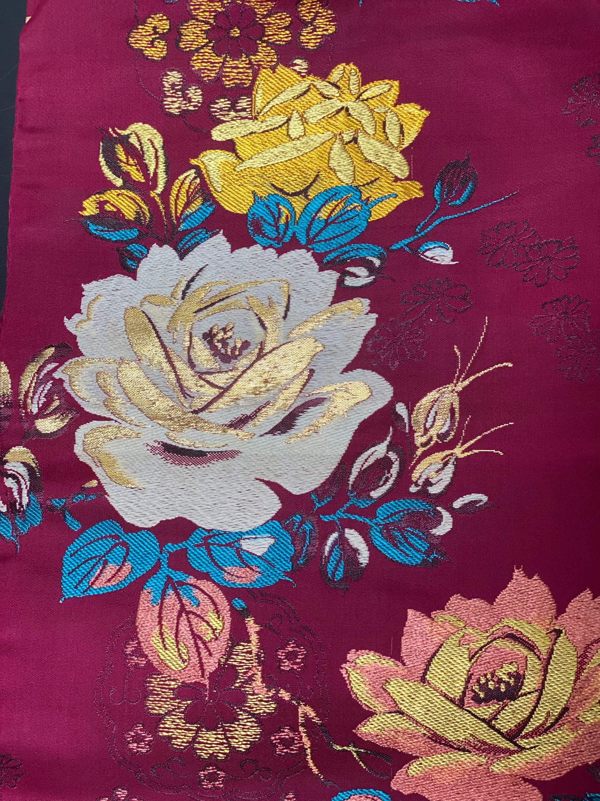 This is a nagoya style obi. That means that one end has been folded in half and sewn shut to facilitate ease of wear. The opposite end is the full width of a traditional obi.